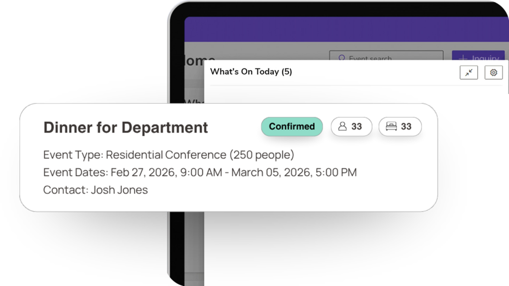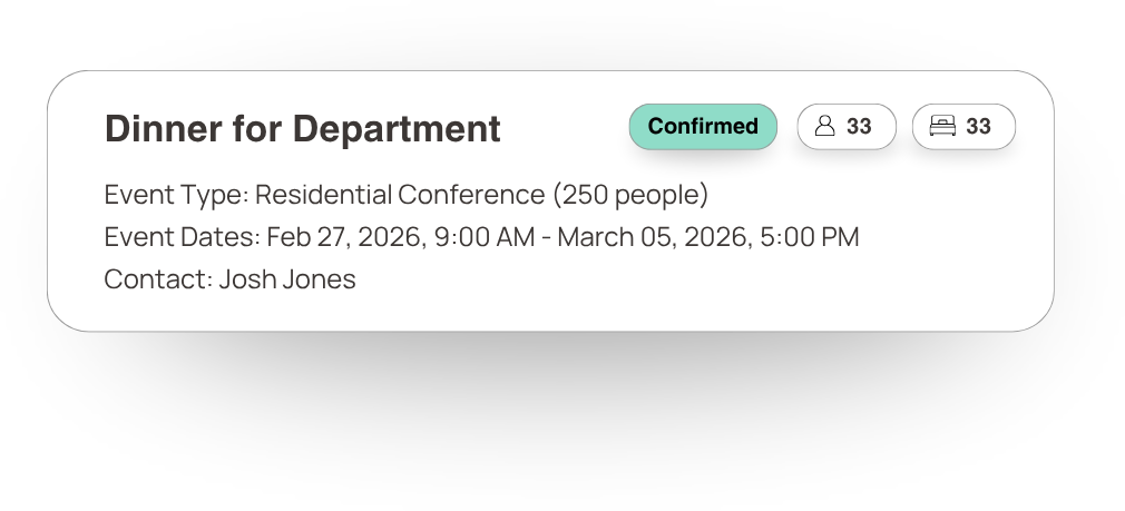 Manage rooms, rates, and guest stays with real-time availability, centralized communication, and operational tools designed for campus accommodation and residential conferences.