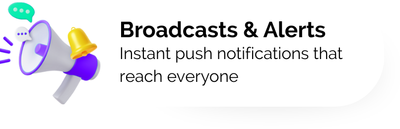 Push notifications, broadcasts, and direct messaging replace outdated emails. Institutions engage students on platforms they actually use, ensuring important updates are seen, shared, and acted on instantly for better connection