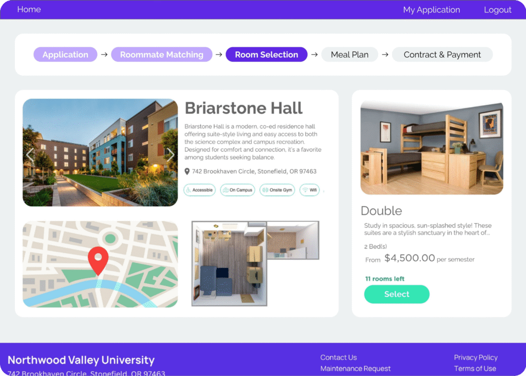 From inquiries to checkout, every stage of housing is streamlined to reduce stress, empower choice, and deliver a smooth, personalized experience. Students feel supported at every step, creating confidence and satisfaction.