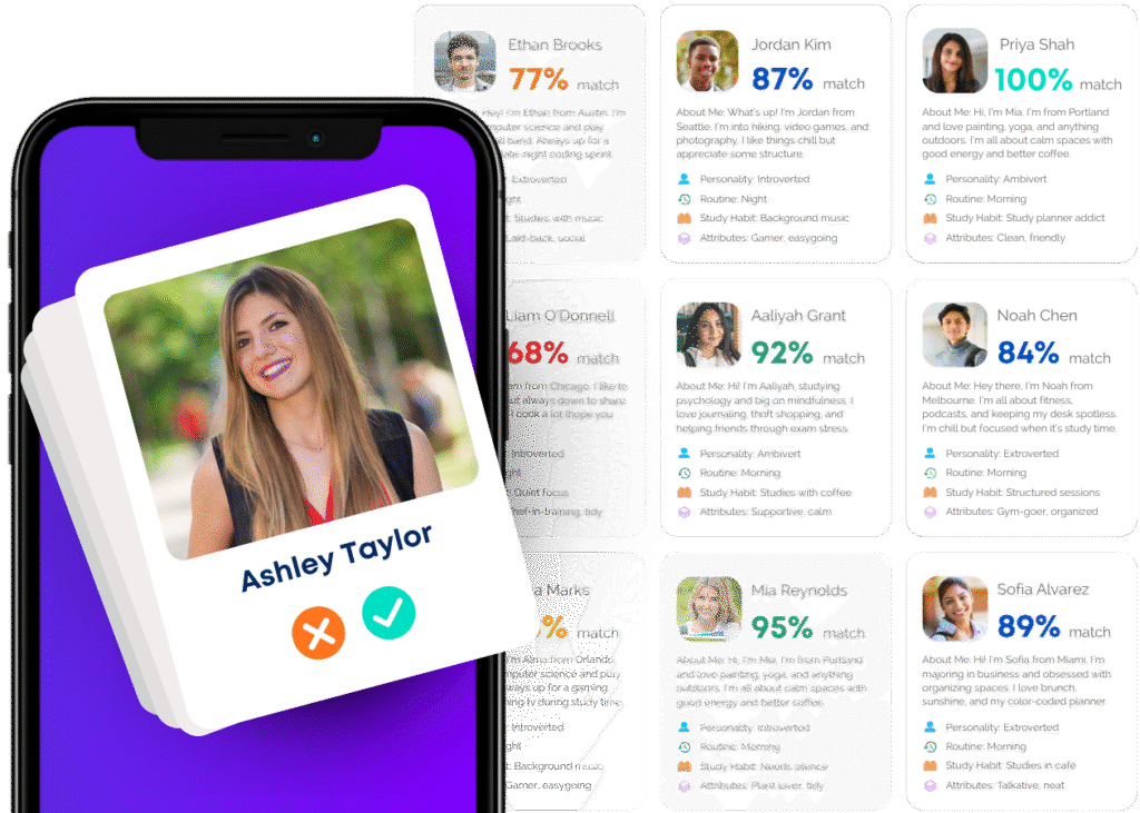Say goodbye to random pairings. Our smart matching system connects students through shared interests, helping friendships form naturally and easing common housing tensions.